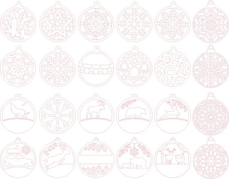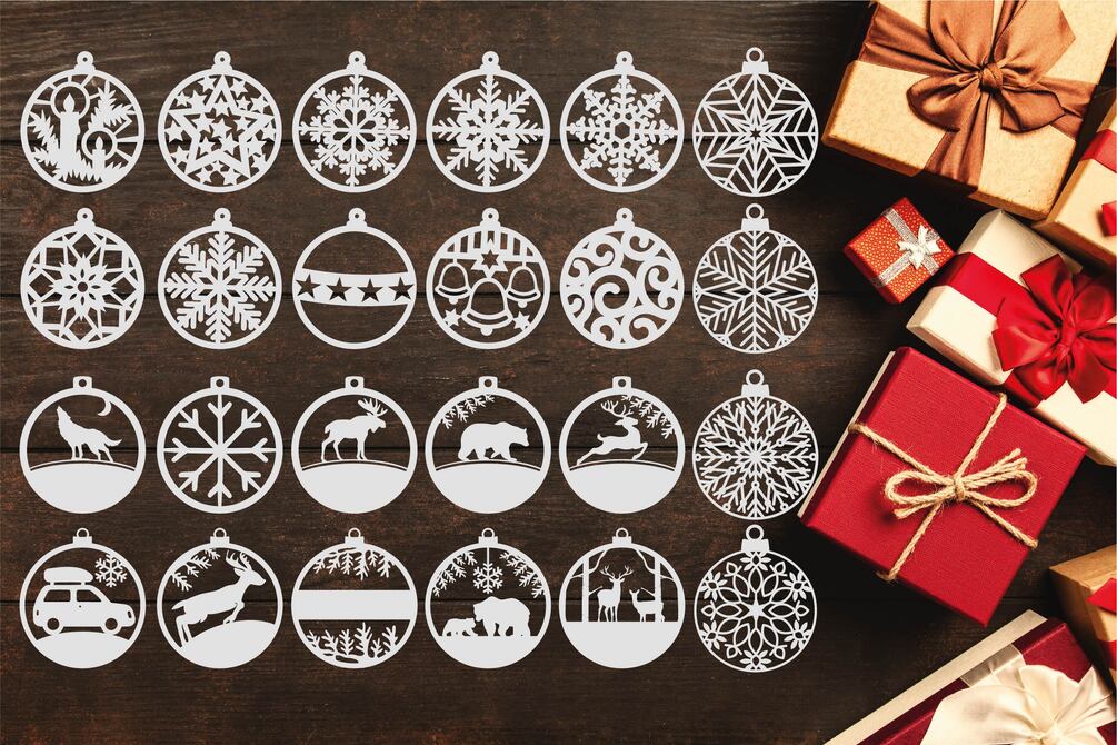 24Christmas Bauble Laser cut Bundle. Laser Cut Christmas Round Ornaments.